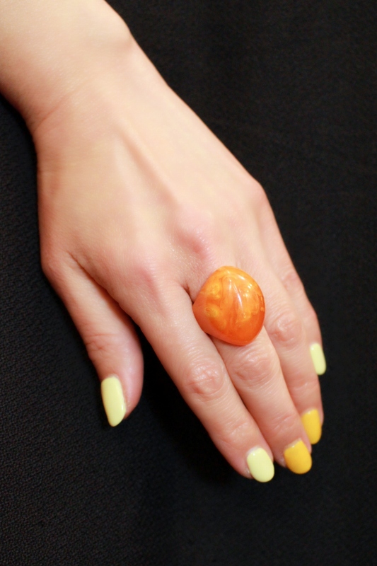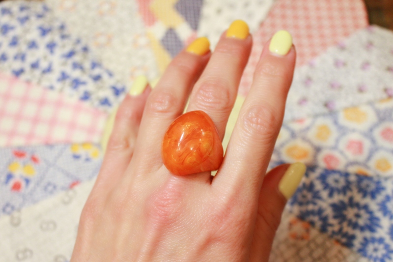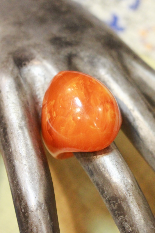 VINTAGE 40s-50s BAKELITE TRANSLUCENT ALMOND DOME RING (ORG/YLW)