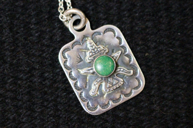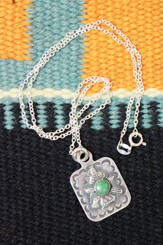 VINTAGE 40s FRED HARVEY ERA KACHINA STERLING SILVER TAG PENDANT NECKLACE