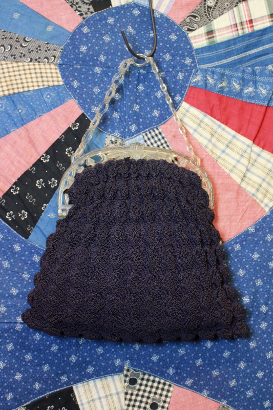 40年代のヴィンテージで、コードクロシェのドローストリングバッグ。