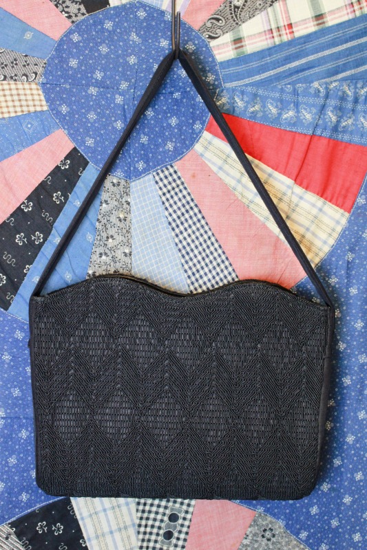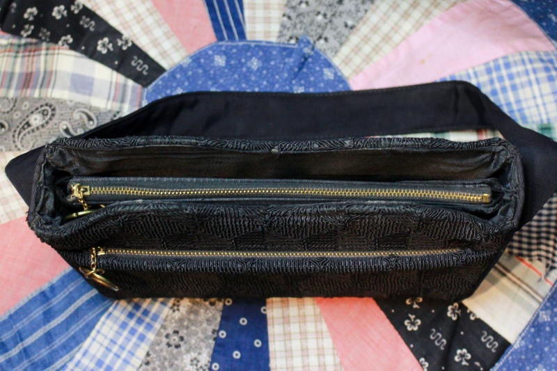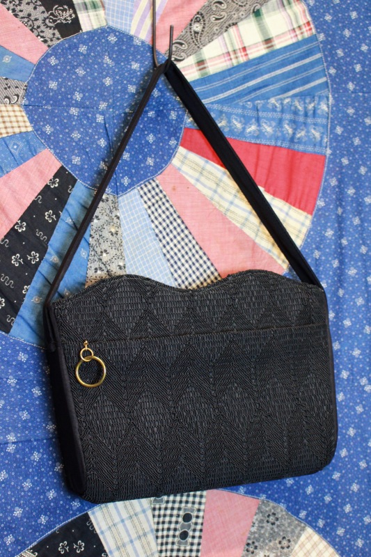 VINTAGE 40s CORD GROSGRAIN HANDBAG WITH ZIPPER POCKET (BLK)