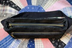 内部が3つに分かれており、センター部分はジッパーが付きで。