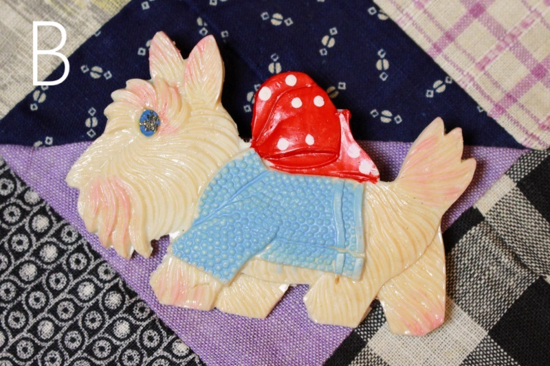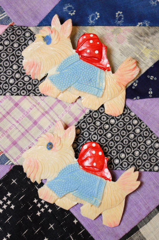 DEAD STOCK 40’S CELLULOID SCOTTISH TERRIER BROOCH (OCCUPIED JAPAN)