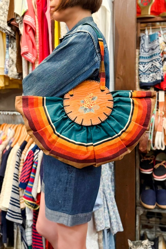 VINTAGE 30s-40s AWNING STRIPE CANVAS BONNIE BAG (BRN/GRN/ORG)