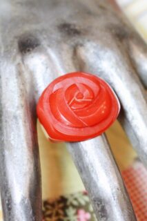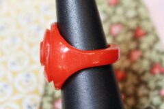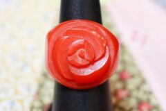 VINTAGE 30s BAKELITE CARVED ROSE FLOWER RING (RED)