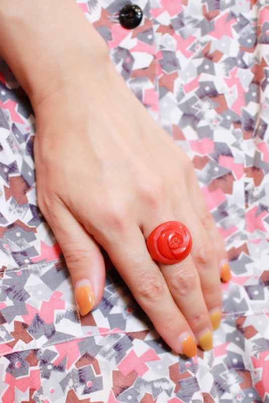 VINTAGE 30s BAKELITE CARVED ROSE FLOWER RING (RED)