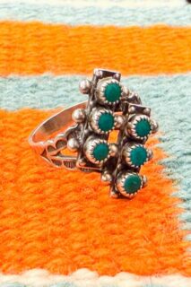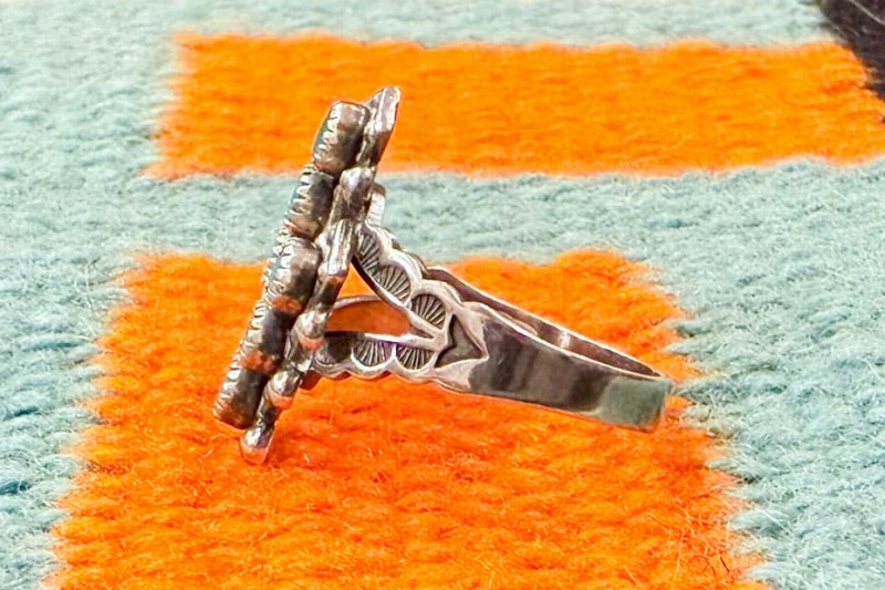 2段斜めにターコイズが並んでおり、スタンプワークがサイドに