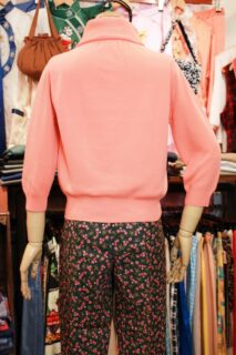 50s 2WAY COLLAR 3/4 SLEEVE NYLON KNIT TOP (S.PNK)