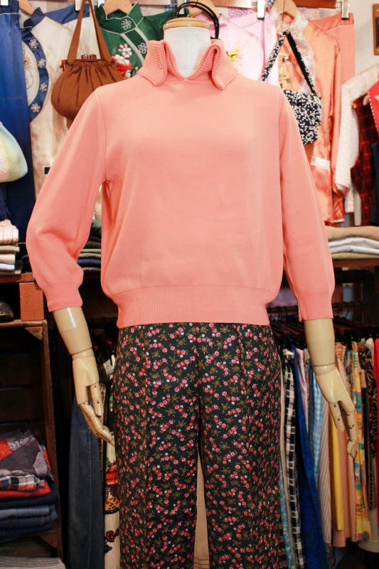 綺麗なサーモンピンクで、ユニークな襟のデザインが